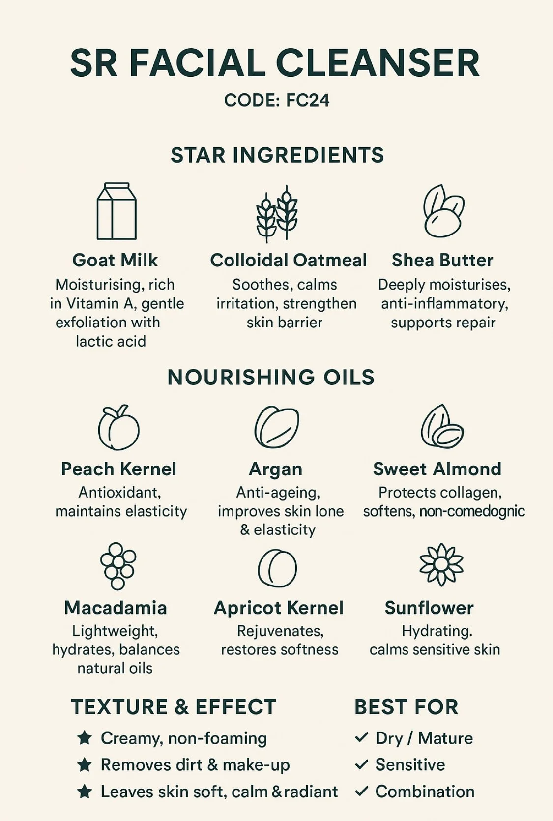 🌲 Sandalwood: Softens, hydrates, grounding aroma